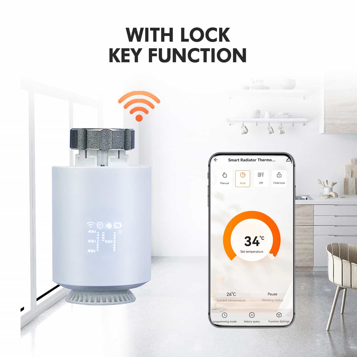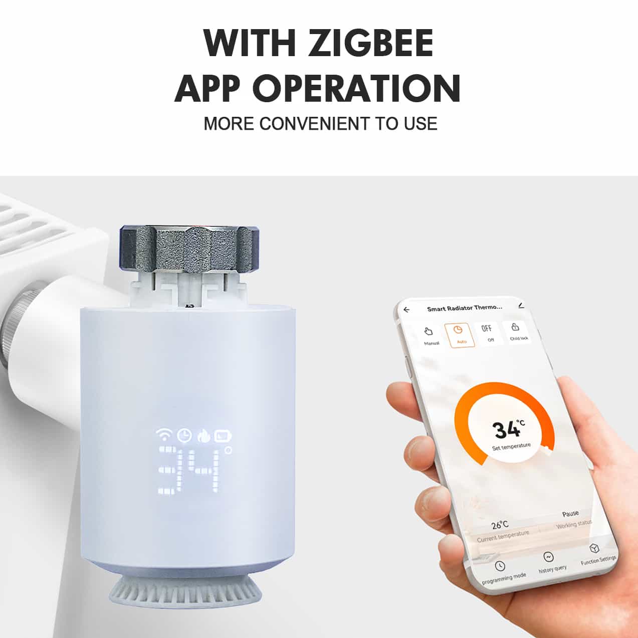 info@minco-heatingcable.comME167 Zigbee 智能散热器温控器基于低功耗 Graffiti Zigbee 3.0 模块,旨在取代传统的散热器手动阀门控制器。Graffiti 云技术使其具备应用程序控制、语音控制、每周每天 4 个时间段编程、儿童锁和家庭共享等智能功能。我们提供的阀门安装配件可兼容市面上 90% 以上的散热器阀门。